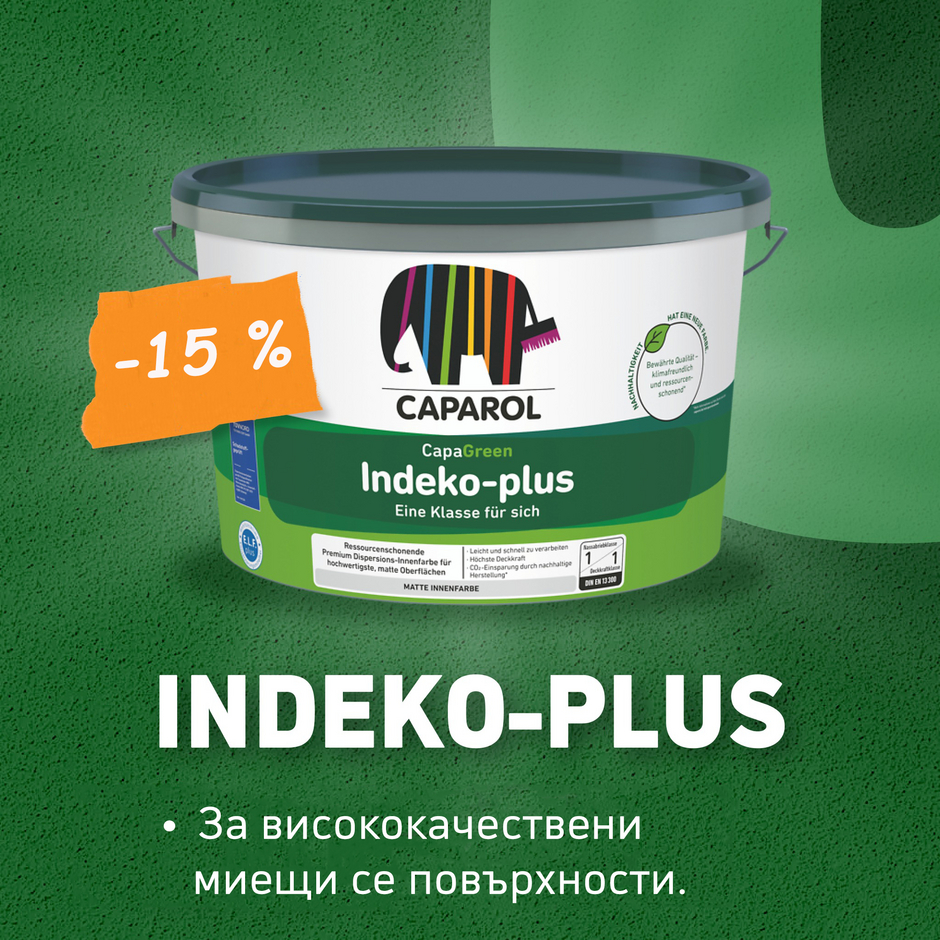 15% отстъпка към всяка покупка на интериорна боя Indeko-plus, CapaMaxx и FungiStop Ag+