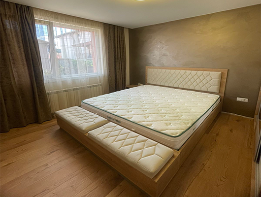 В конкретния обект е като акцентна стена в спално помещение.