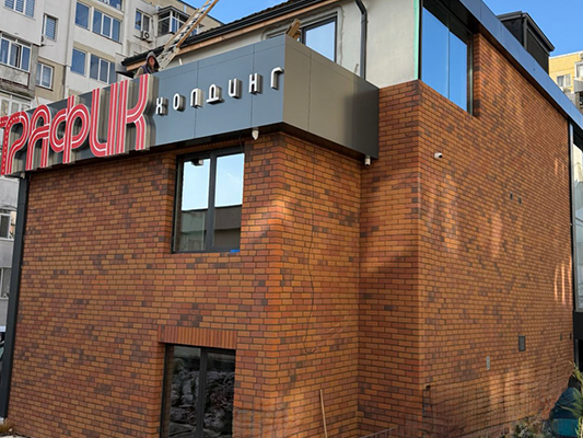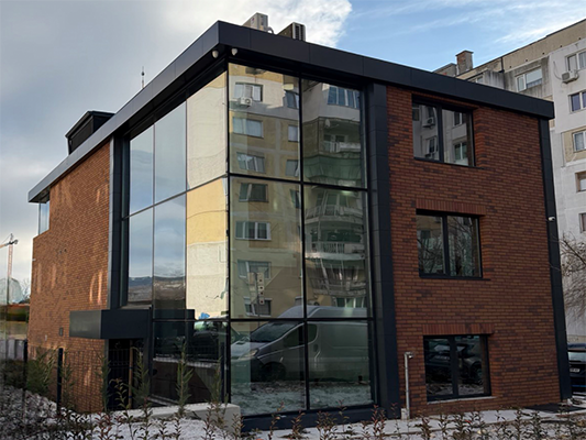 За финишния слой на фасадата си, Трафик Холдинг са избрали декоративните тухлички Original Meldorfer. Избраният модел от инвеститора е Mecklenburg, в комбинация с фугираща смес в цвят Anthrazit.