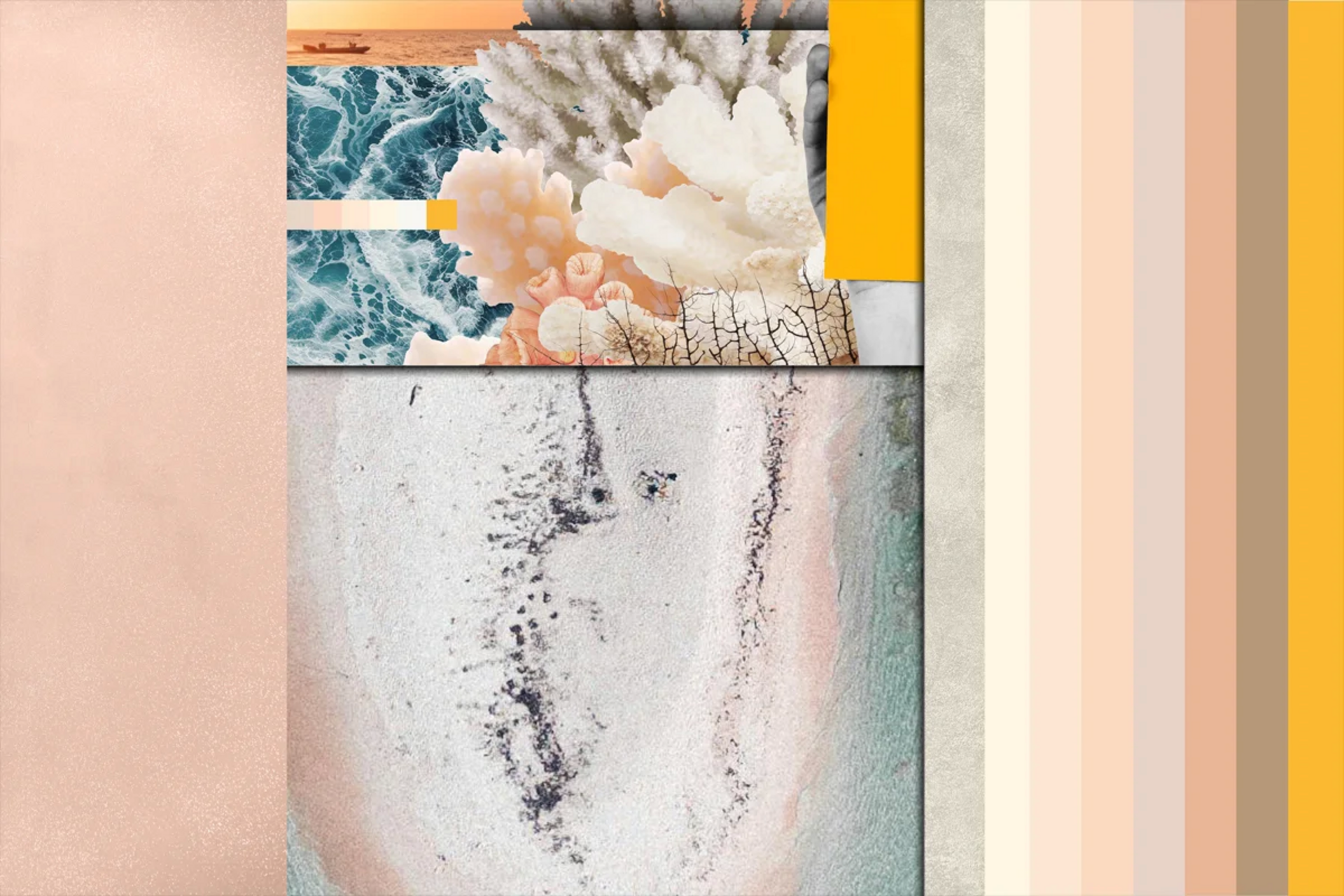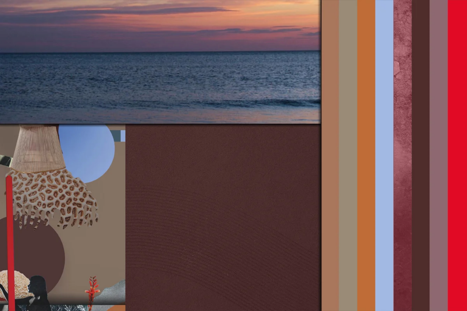 Нежни розови и пастелни тонове улавят първата светлина на хоризонта, докато ярката кайсия блести мощно. Комбинацията от топли, но леки нюанси от сродни цветове се слива, за да създаде изискана и ободряваща атмосфера на благополучие.