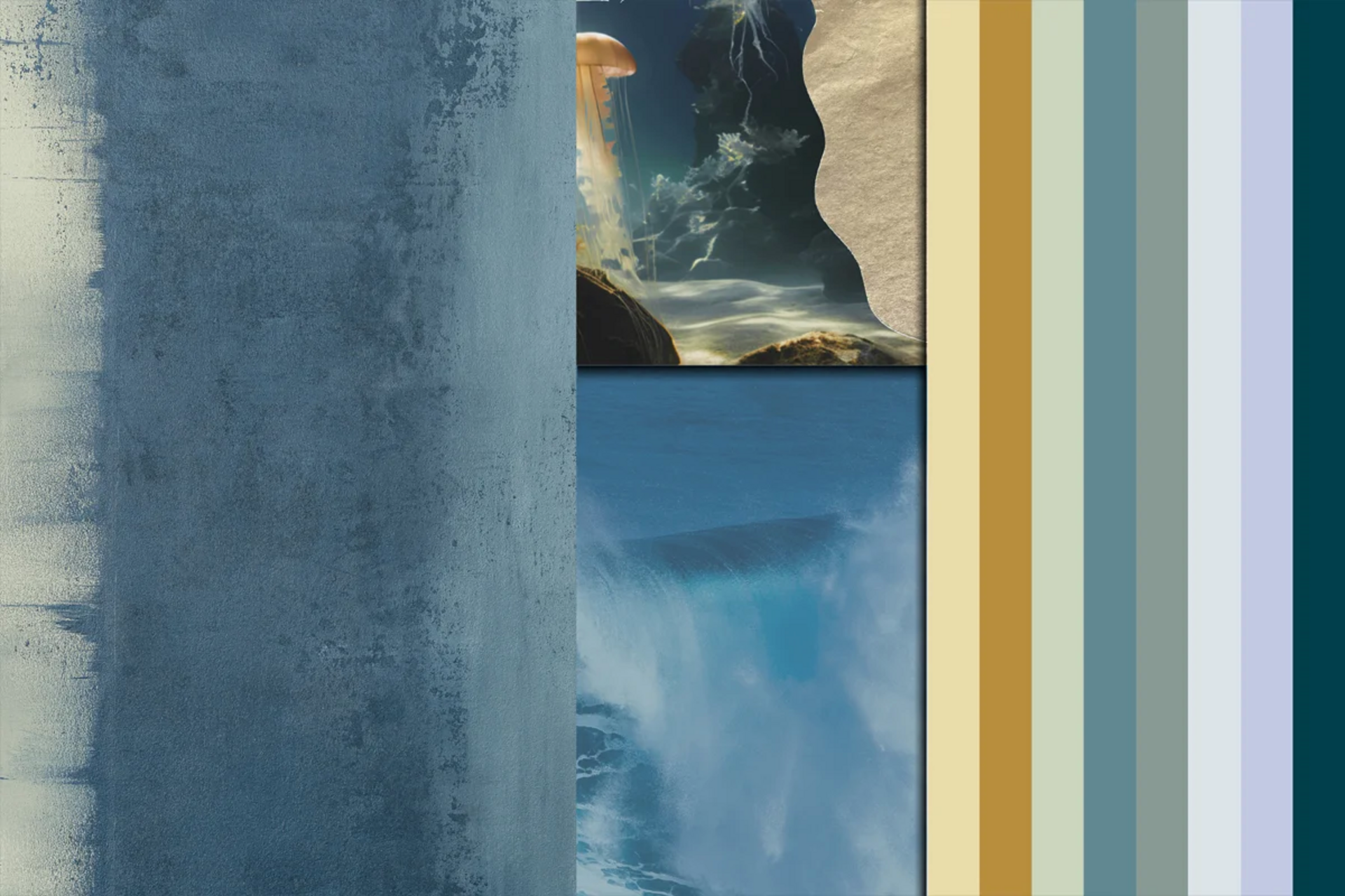 Взаимодействието между лекота и спокойствие създава атмосфера, която е свежа, вдъхновяваща и същевременно успокояващо позната. Ясните нюанси на синьото отразяват дълбочината и необятността на океана, докато наситеният горчичен тон добавя топлина.